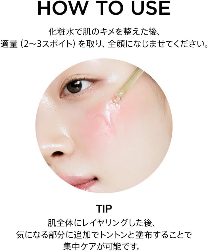 スポイトで2〜3滴 を手に取り、顔全体にやさしくなじませるだけです。